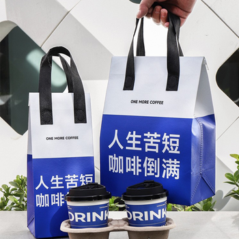 Personalizzato personalizzato nero bianco marrone caffè da asporto carta Kraft da asporto sacchetto di imballaggio con manico per la consegna di cibo